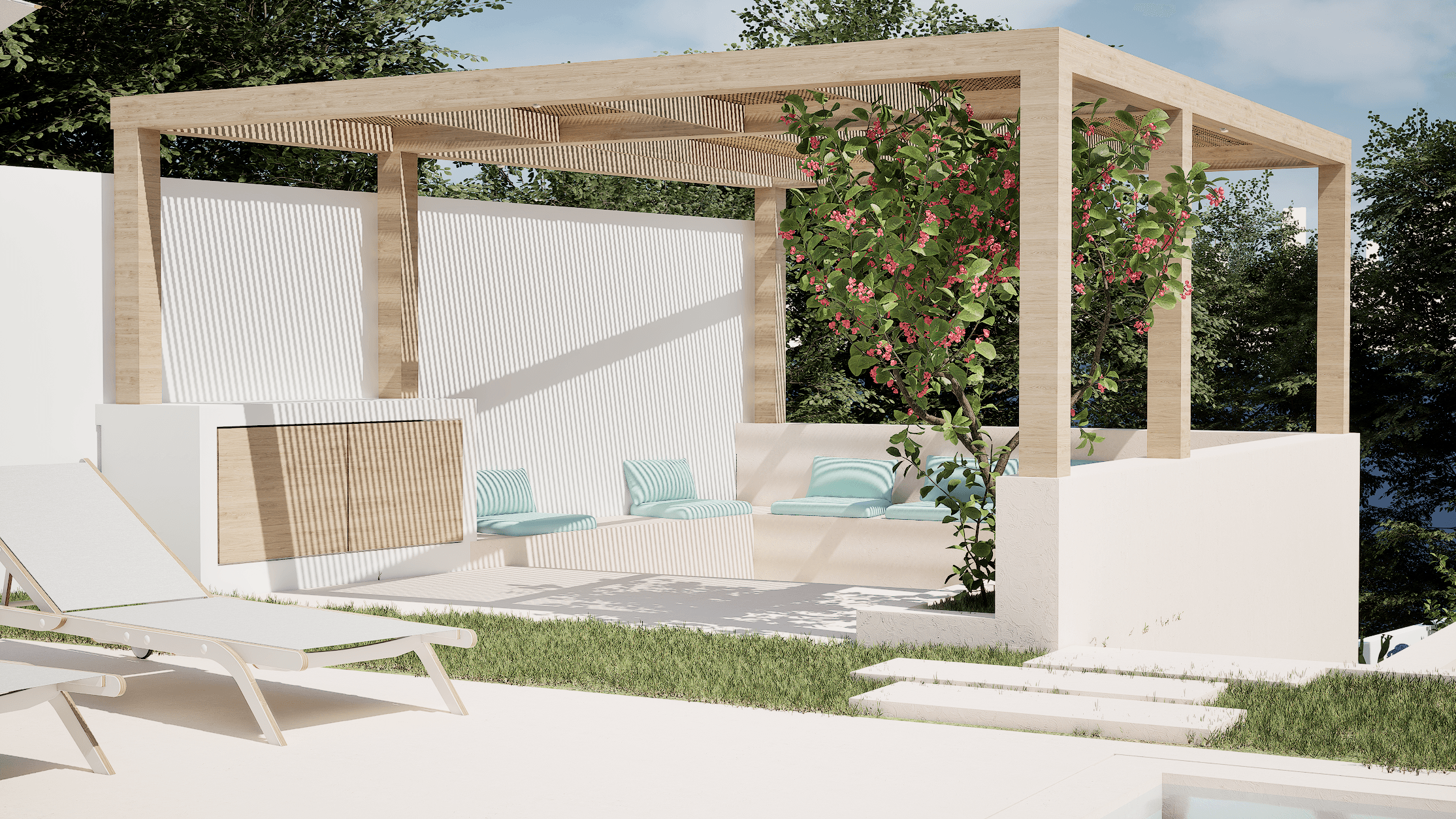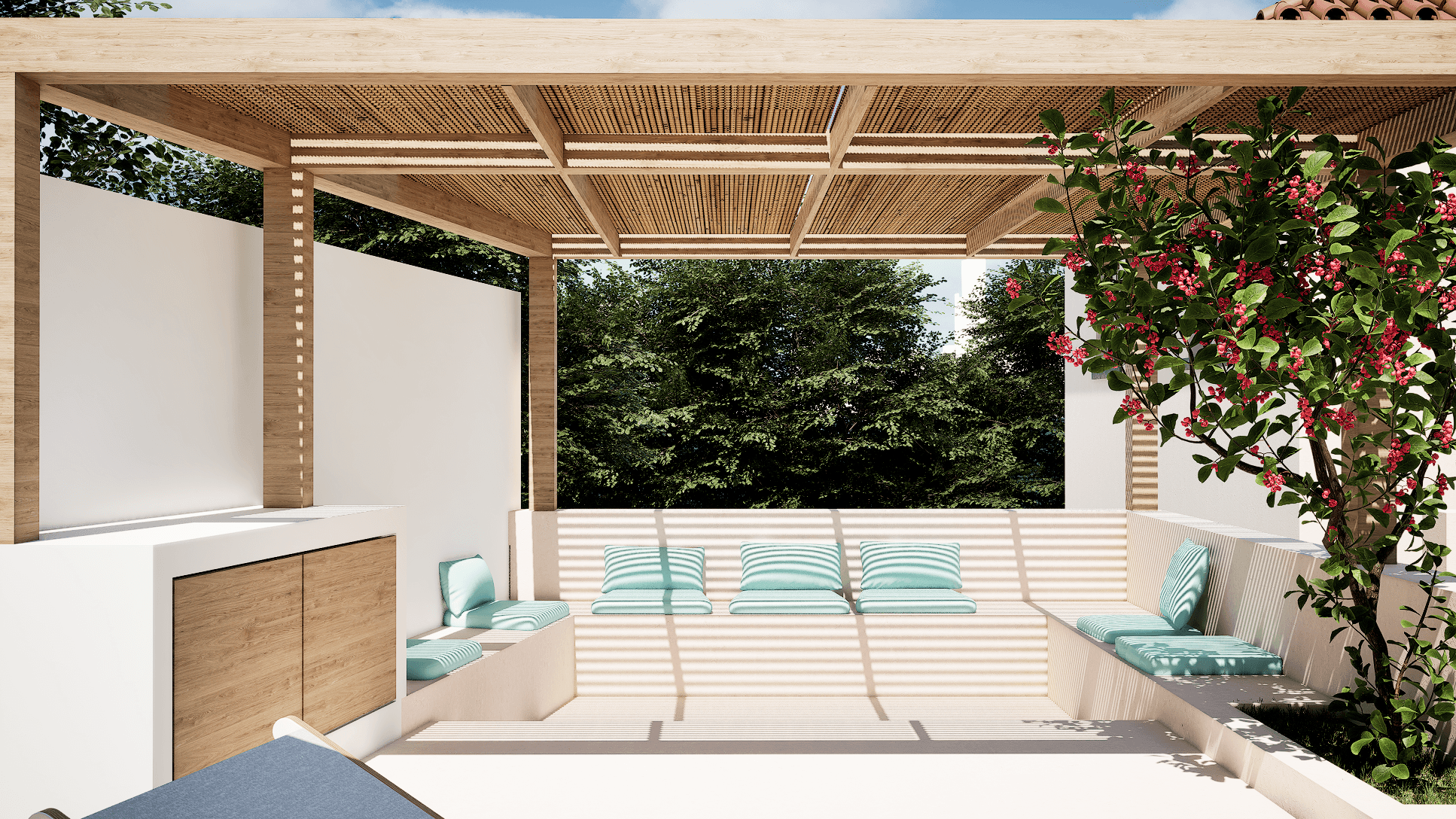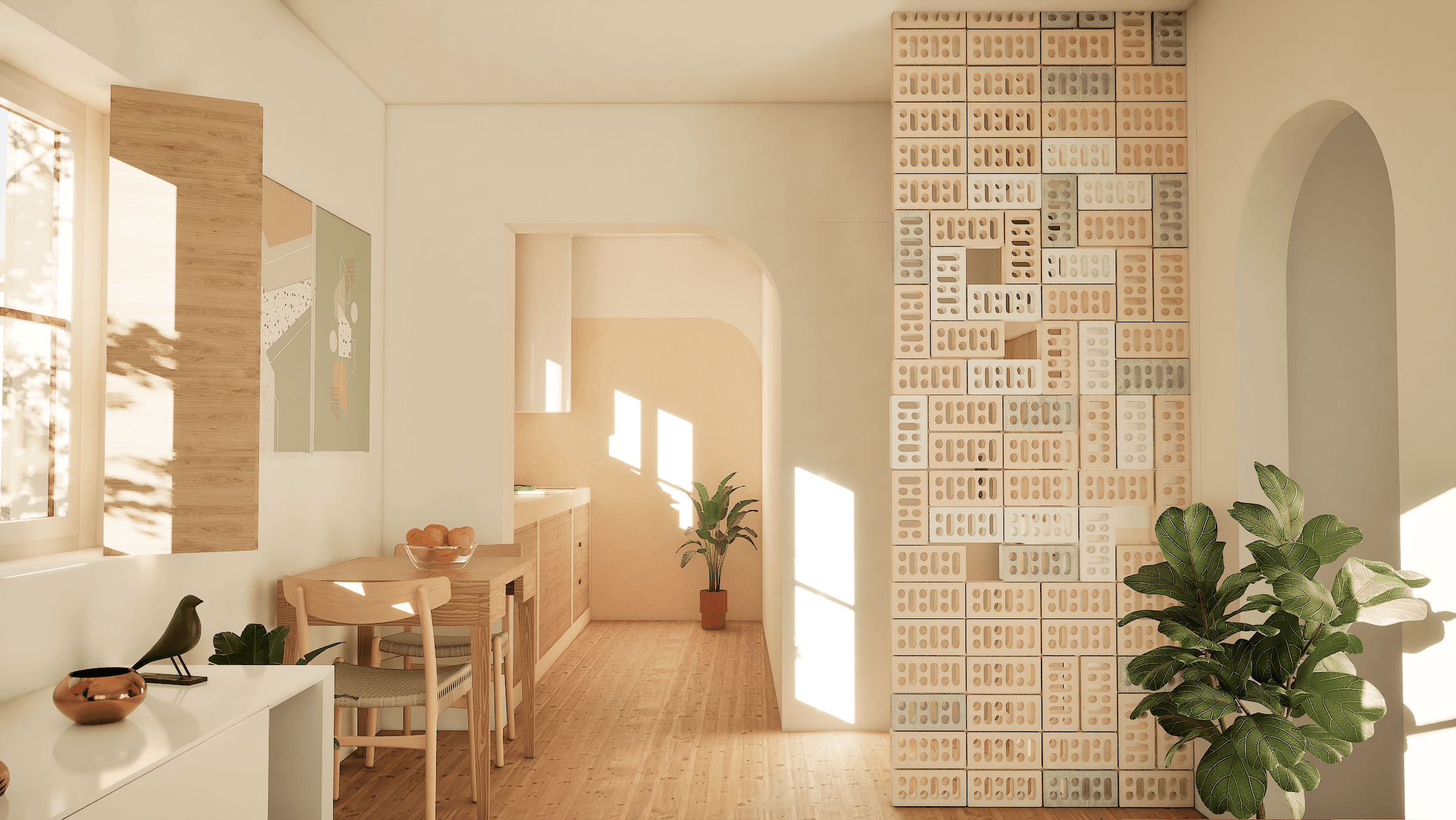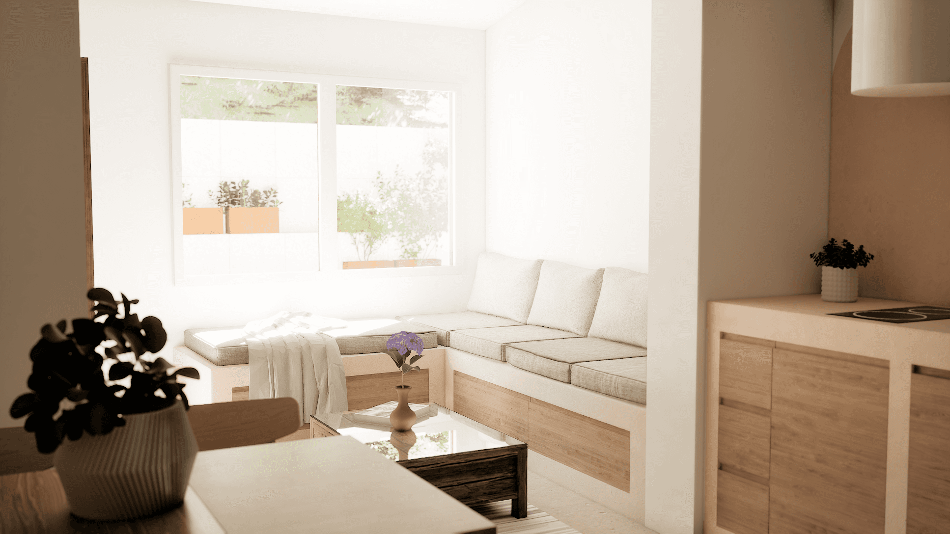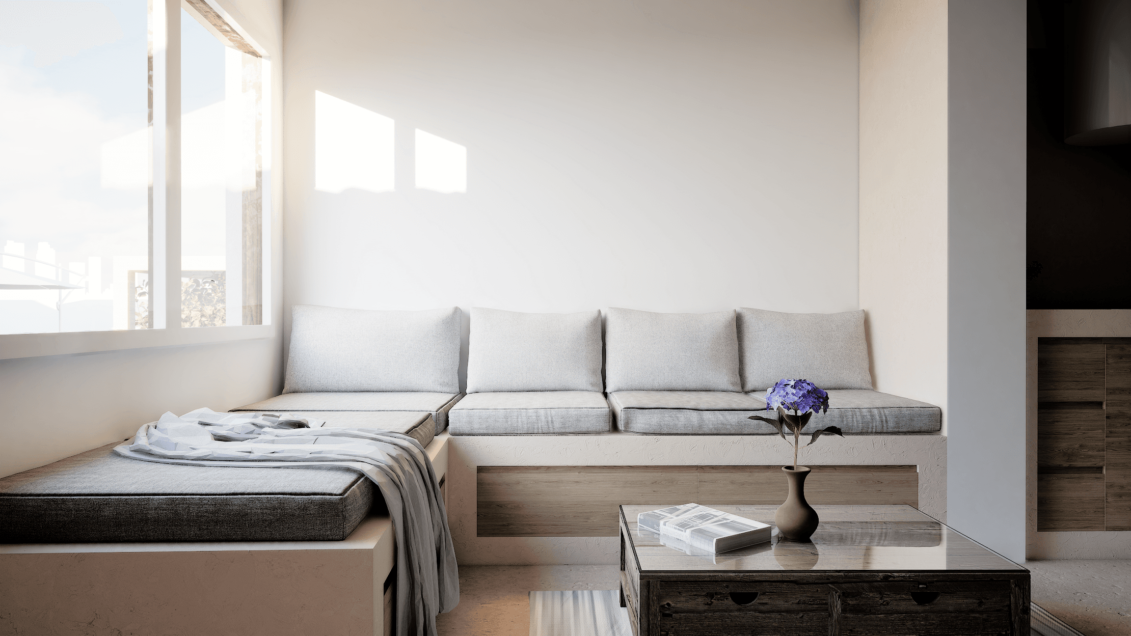 This picturesque house in a very scenic location, just on the other side of the Rio Tejo, a 10-minute boat ride from Belém, is the starting point for a charming guest house. The house was very degraded and in need of a total renovation. It consists of 6 fully equipped apartments with different configurations, boasting a clean and light design, intended to provide a feeling of relaxed and comfortable space. Light and warm materials, as well as light pastel colors, were used to ensure this feeling. There is a co-working space, a minimal garden, and a pool. A pergola and an outside lounge space give the garden a comfortable and inviting feeling.