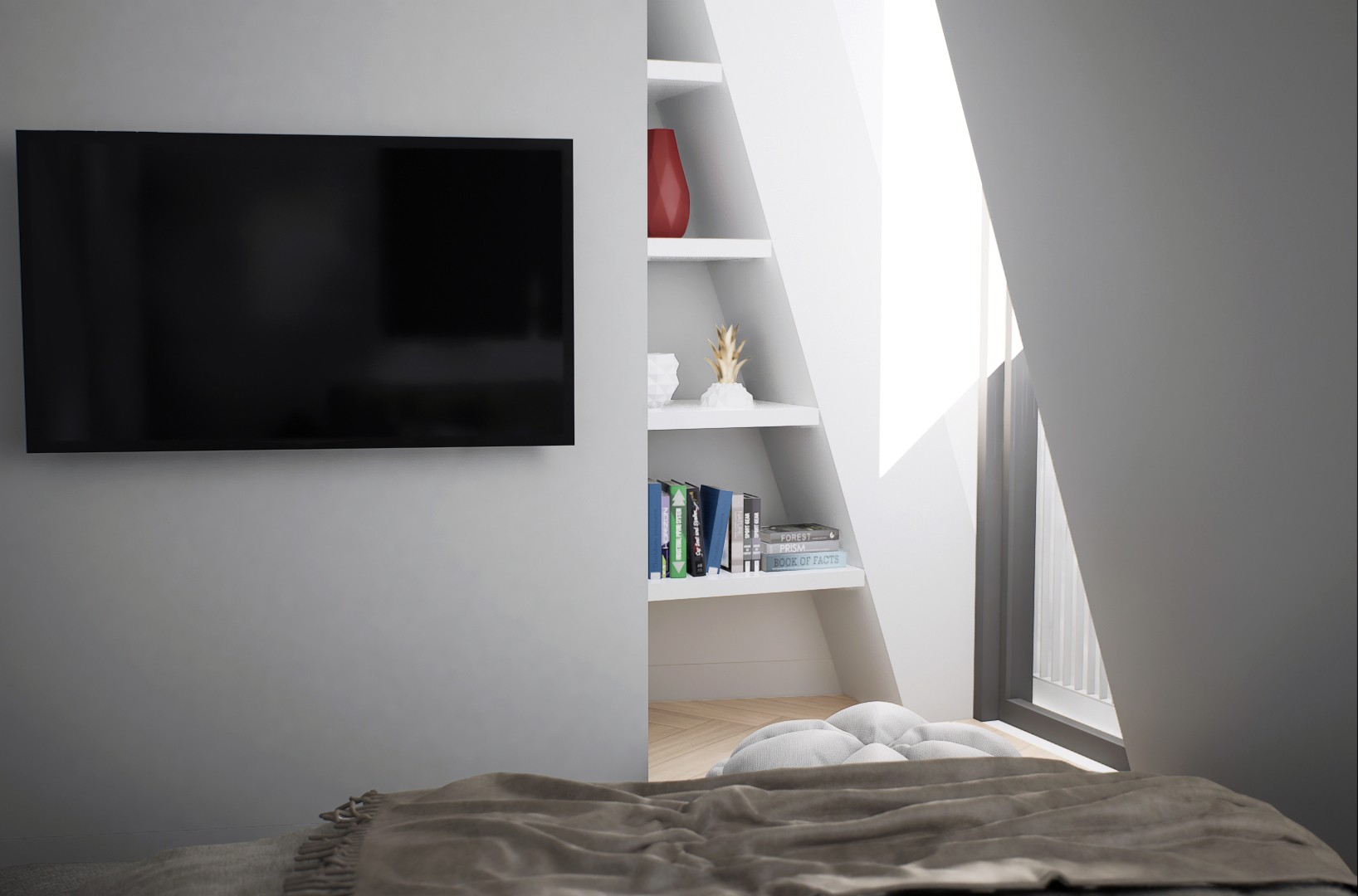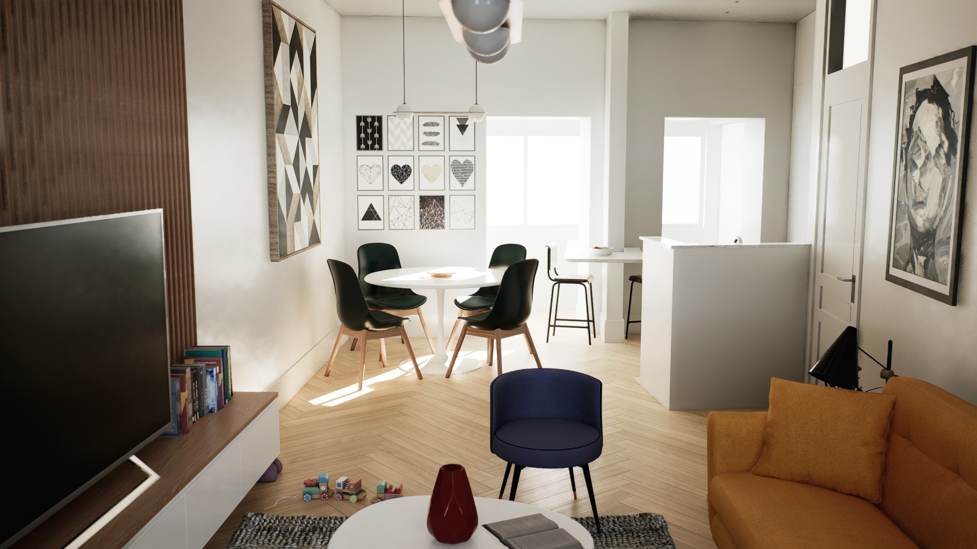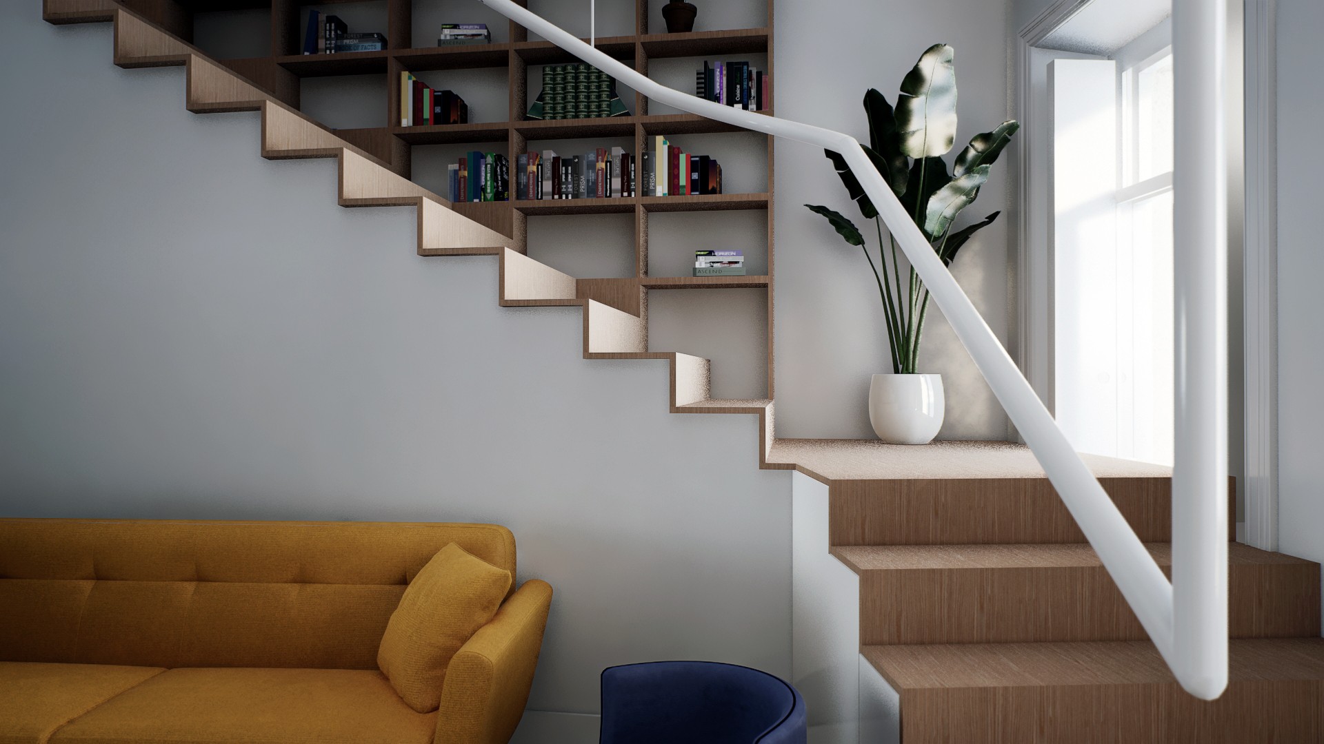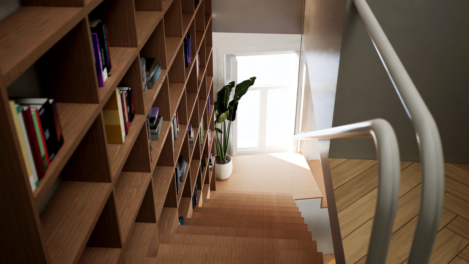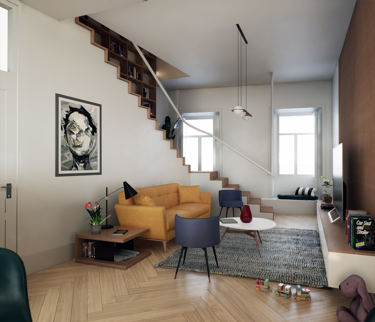 Single-family housing in Lisbon. Single-family housing in Principe Real, Lisbon. The intervention we carried out was the creation of 3D spaces, discussing solutions and construction materials with the client, in order to refine tastes and intentions. All materials and architectural elements added to the initial project were developed in partnership with the clients, in order to find a distinct image and visual and experiential comfort in the home.