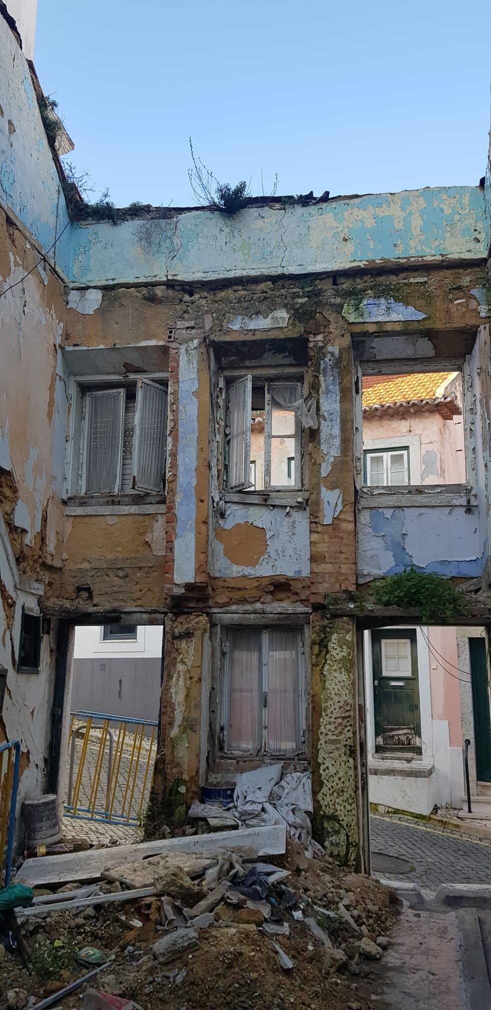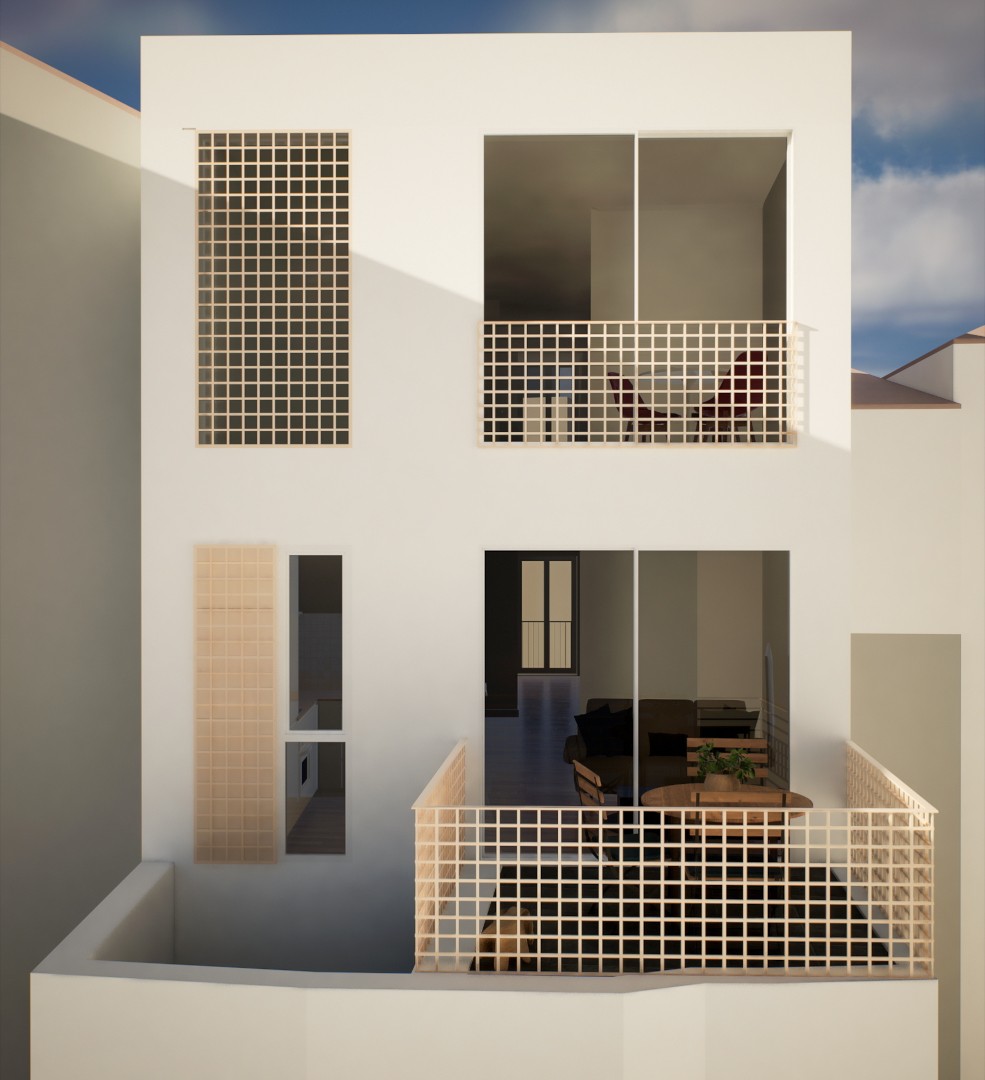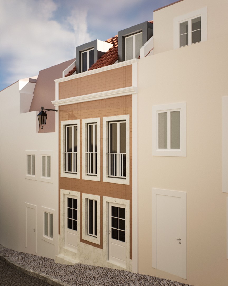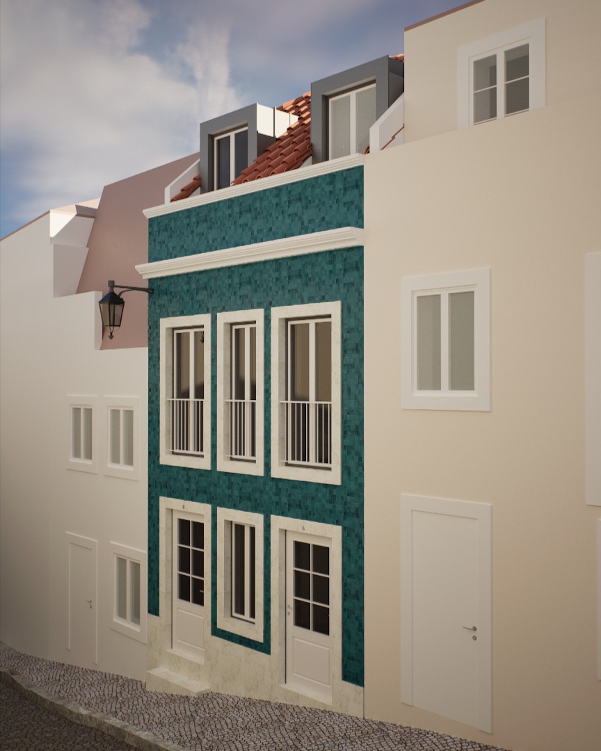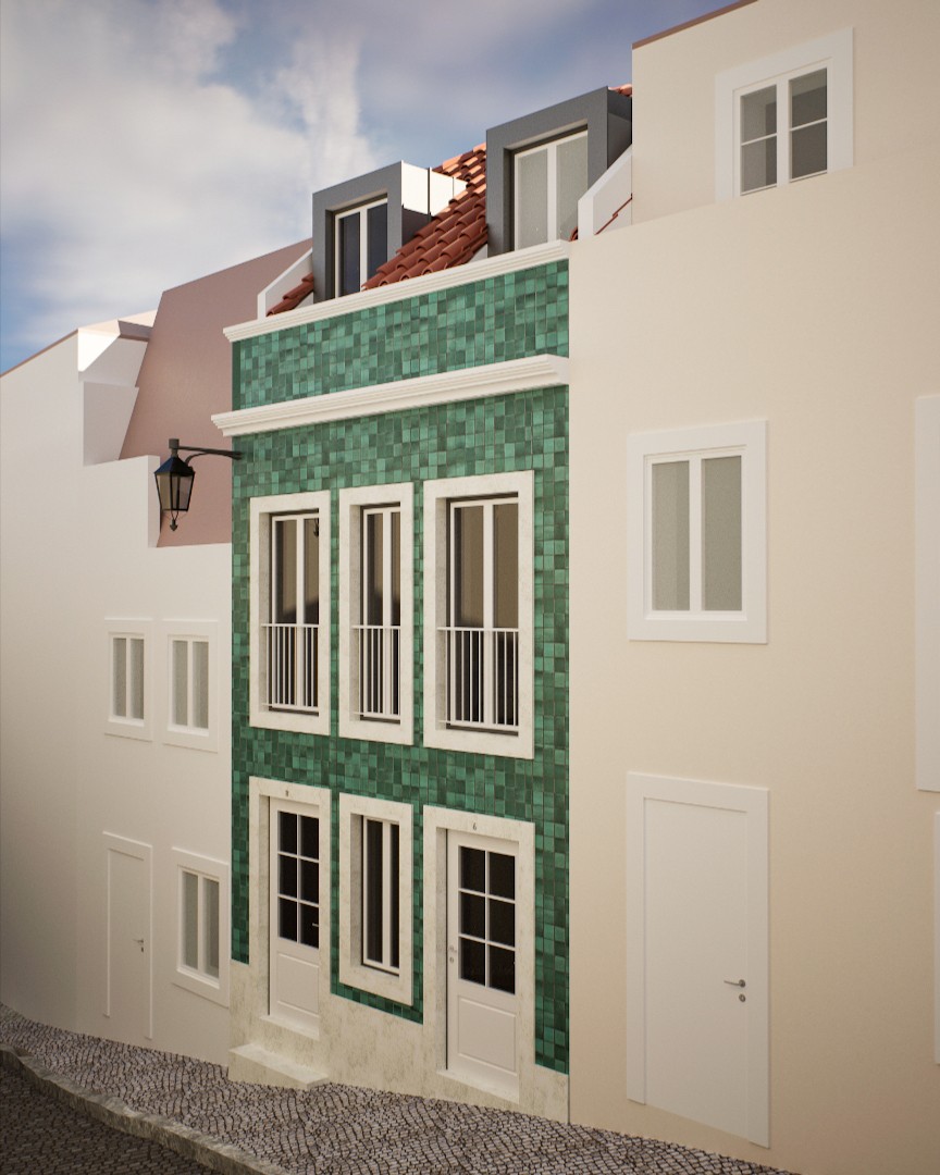 This project arose from a ruin in the center of the city of Almada, in which only the 4 walls were used. Simple in construction and using contemporary materials, the house consists of 3 independent floors, each with its own patio and outdoor area. Despite being a narrow building, all possible niches were used to optimize the apartments, for example, using the upper part of the common stairs for a small library next to one of the bedrooms.